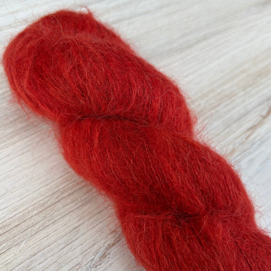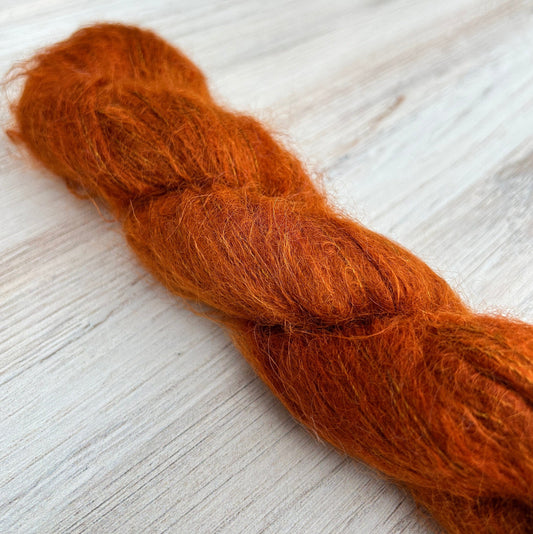 SURI SILK is a decadent, lovely lace-weight yarn often used in conjunction with another yarn to add a little fluff and softness. It is 74 percent baby alpaca and 26 percent silk. Suri Silk is often used as a substitute for mohair, as some people cannot tolerate mohair against their skin. Our skeins are sold as 50 grams - 328 yards (300m). If you knit it single stranded, a size 1-3 US needle works well. Otherwise, if you plan to use 2-strands of Suri Alpaca, a size 5-6 needle works well.